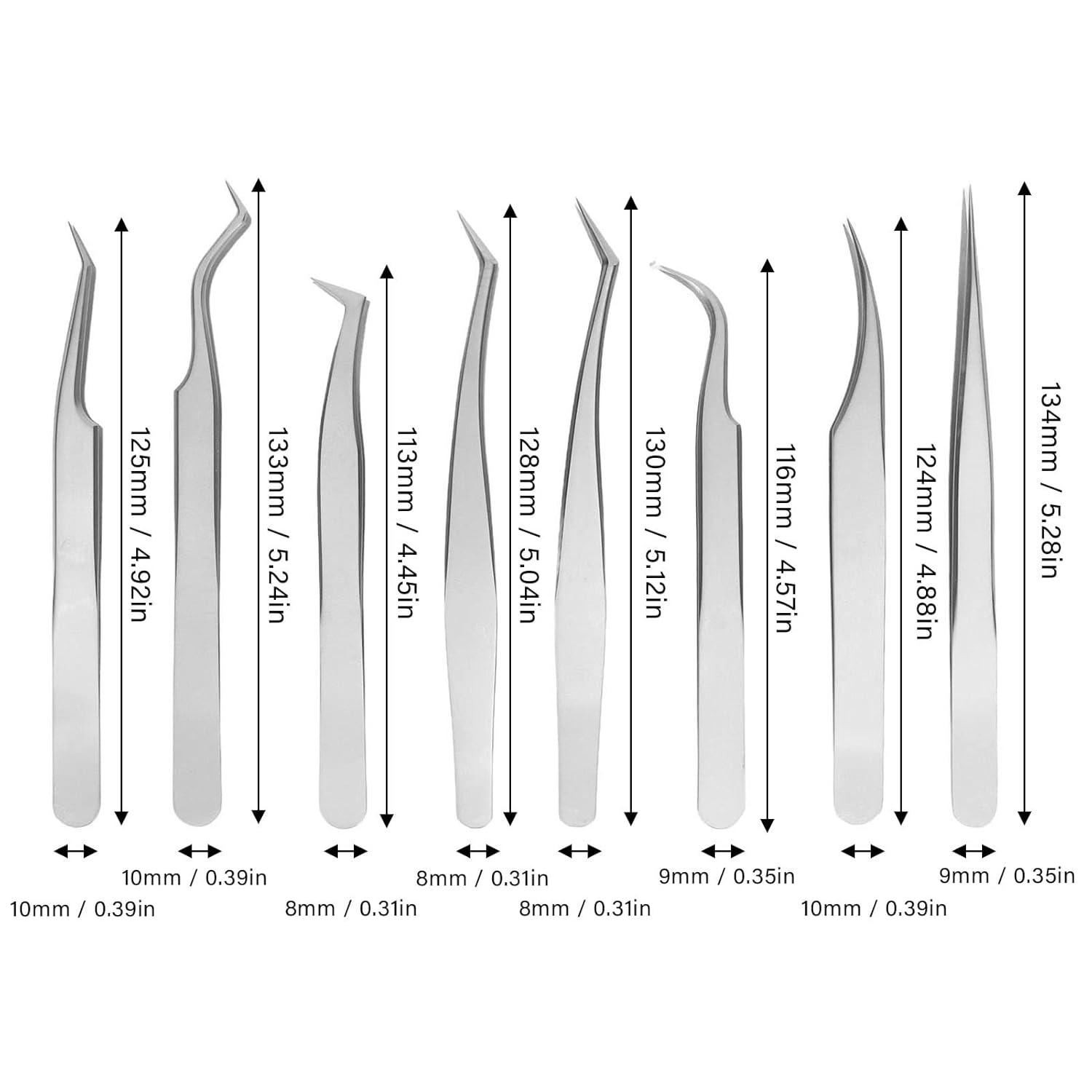 8-part eyelash tweezers set made of stainless steel with a fine lace ergonomic design one-piece shape silvery eyelash extension tweezer set